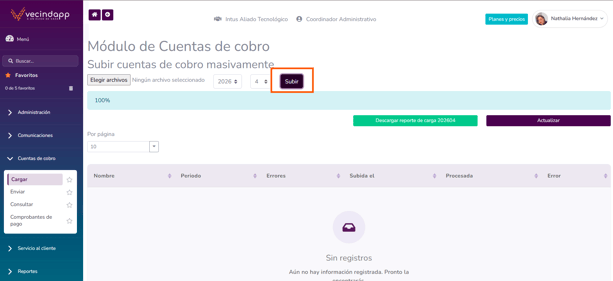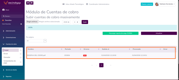 - Ingresa al módulo Cuentas de cobro y selecciona la opción Cargar 🖥️