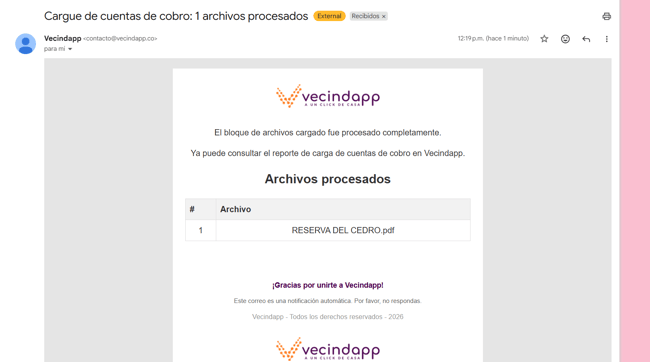 - Recibirás un correo electrónico con el resultado del proceso 📩