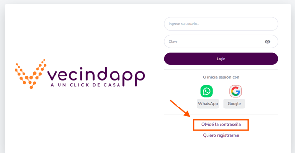 Así ya podrás ingresar nuevamente a vecindapp!.