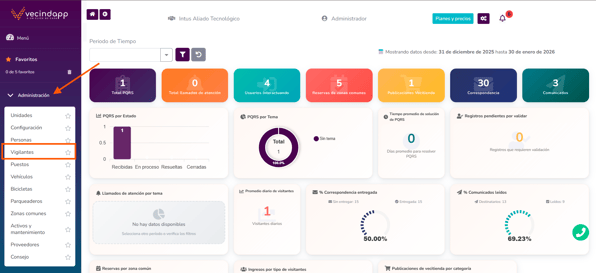 DirÃgete al menú Administración y selecciona la opción Vigilantes.